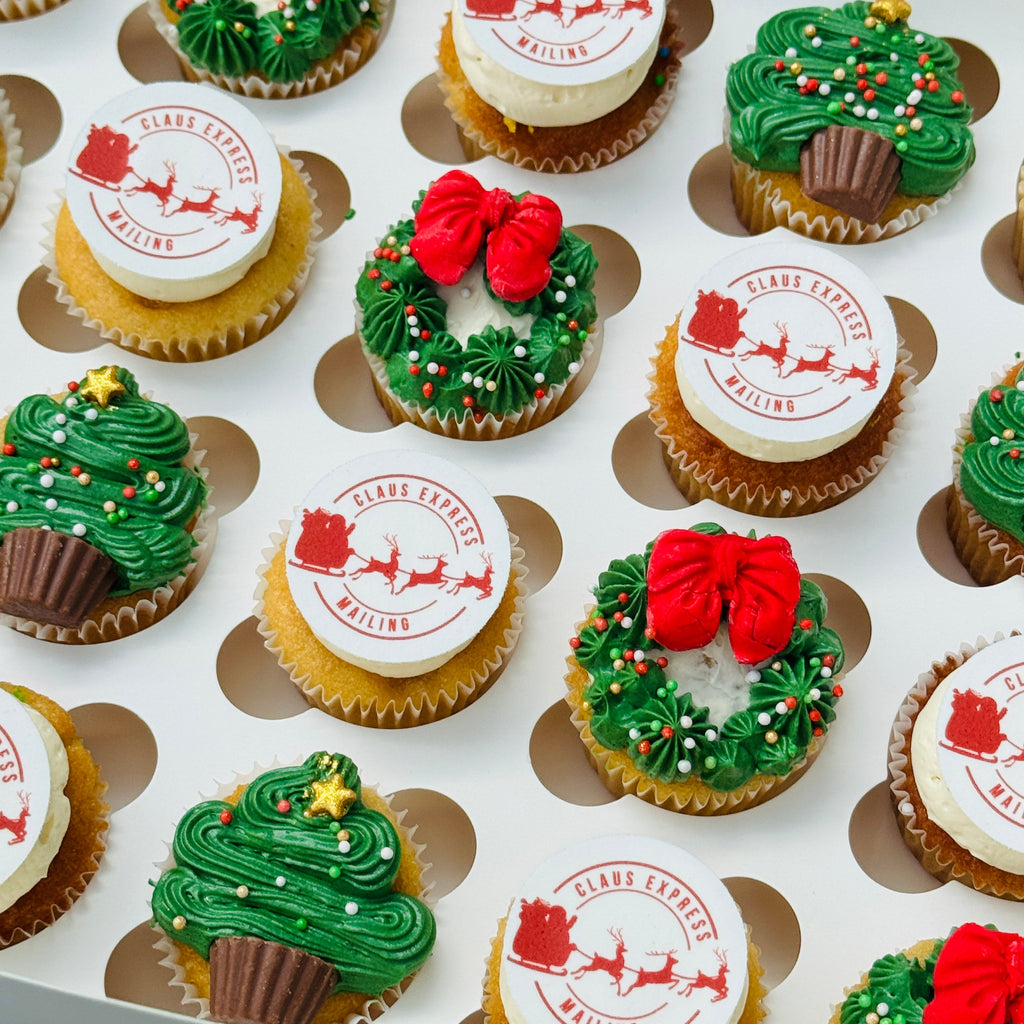 Each box features an adorable assortment of our fan-favourite Vanilla Bean and Chocolate Fudge mini cupcakes, all dressed up in festive buttercream swirls, Christmas sprinkles, and the cutest holiday toppers — think trees, stars, snowflakes, and jolly little surprises that make every bite feel like Christmas morning.