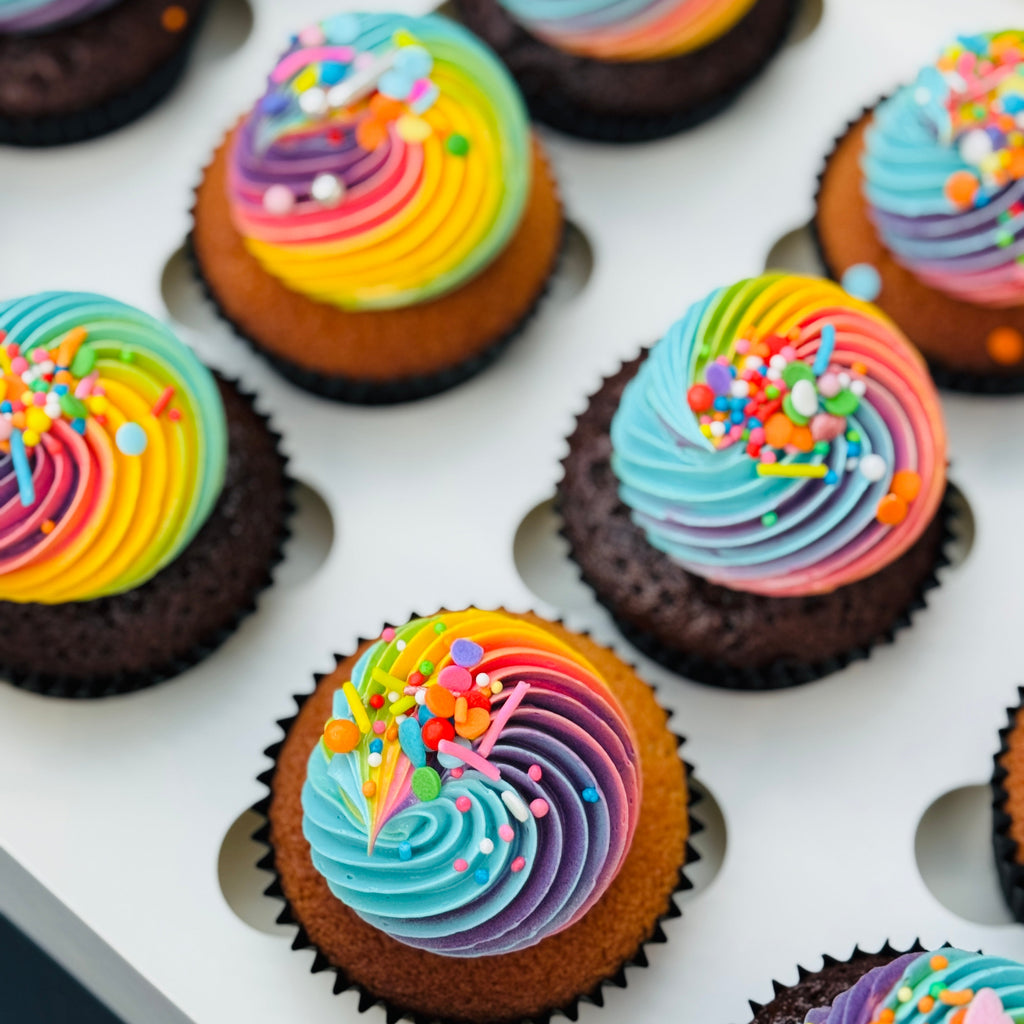 Made fresh every morning, our cupcakes are topped with an assortment of our signature buttercream and house made toppings. It is important to keep cupcakes at room temperature—do not refrigerate them as this will dry out the cake. Cupcakes are best when consumed within 2 days of purchase.